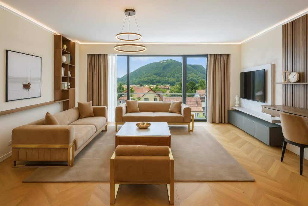 Mai mult spațiu, mai mult confort. Climatizare individuală, două dormitoare, living separat, două băi moderne, două balcoane și bucătărie complet utilată. Un sejur ca acasă, în inima Brașovului.